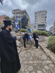 Η τελετή πραγματοποιήθηκε παρουσία των Αντιδημάρχων Σπύρου Αργυρού, Γιάννη Τακτικού, που εκπροσώπησαν τον Δήμαρχο, των Περιφερειακών Συμβούλων Αττικής κ Ρίτα Μωραιτάκη , Νίκου Μαγκνάρη, προέδρων και εκπροσώπων Συλλόγων, μαθητών σχολείων και φορέων της πόλης, που τίμησαν με την παρουσία τους την ημέρα μνήμης και Εθνικής υπερηφάνειας.
