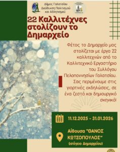 Αγαπητά μέλη, ο Σύλλογος Πελοποννησίων Γαλατσίου σας καλεί να παρακολουθήσετε μαθήματα ζωγραφικής με δάσκαλο την καθηγήτρια εικαστικών τεχνών Ιλιάνα Σκουλάξινου. Το τμήμα ζωγραφικής ξεκίνησε από το 2014. Τα μαθήματα πραγματοποιούνται στα γραφεία του συλλόγου μας Διδύμων 6-8 και κάθε χρόνο ο Σύλλογός μας πραγματοποιεί Έκθεση Ζωγραφικής στο Πολιτιστικό κέντρο “Καμίνι” με έργα των μαθητών του.